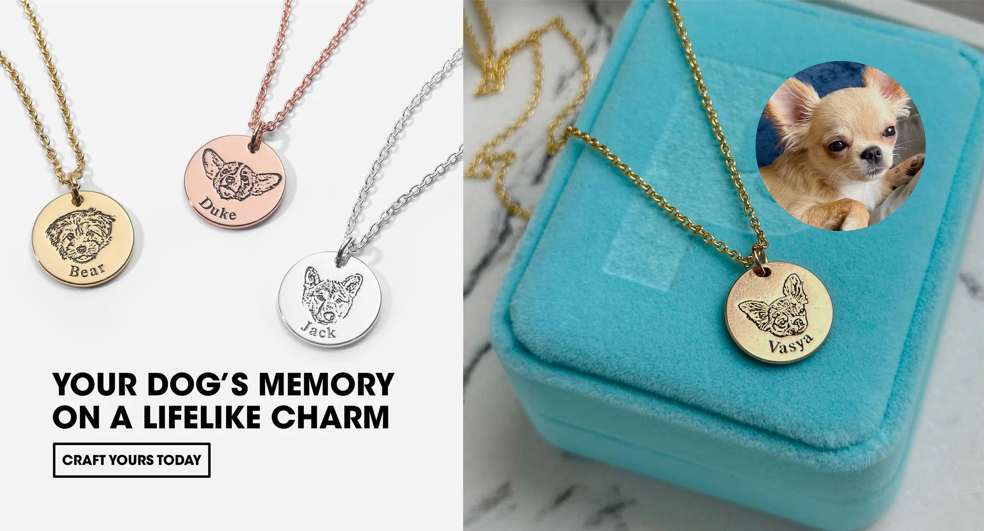 Make every day a little brighter with jewelry that’s crafted just for you and your fur baby. Our personalized pieces let you keep them close to your heart, wherever you go.